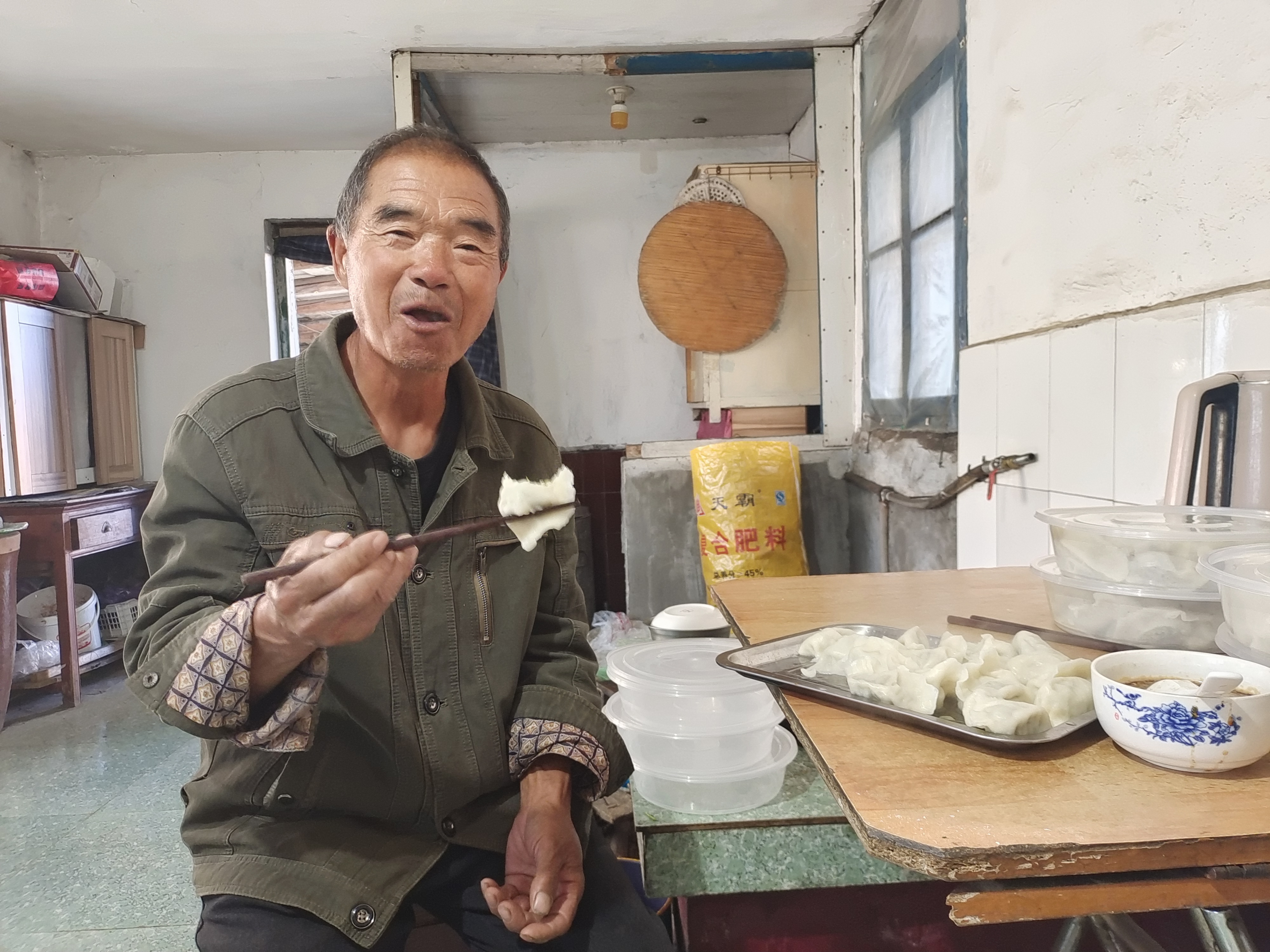 獨(dú)居老人丁玉章滿(mǎn)臉幸福地夾起一個(gè)熱乎乎的餃子,咬了一口,細(xì)細(xì)的味品,直呼:“好吃,太好吃了,謝謝你們,好久沒(méi)吃上這么好吃的餃子了!”