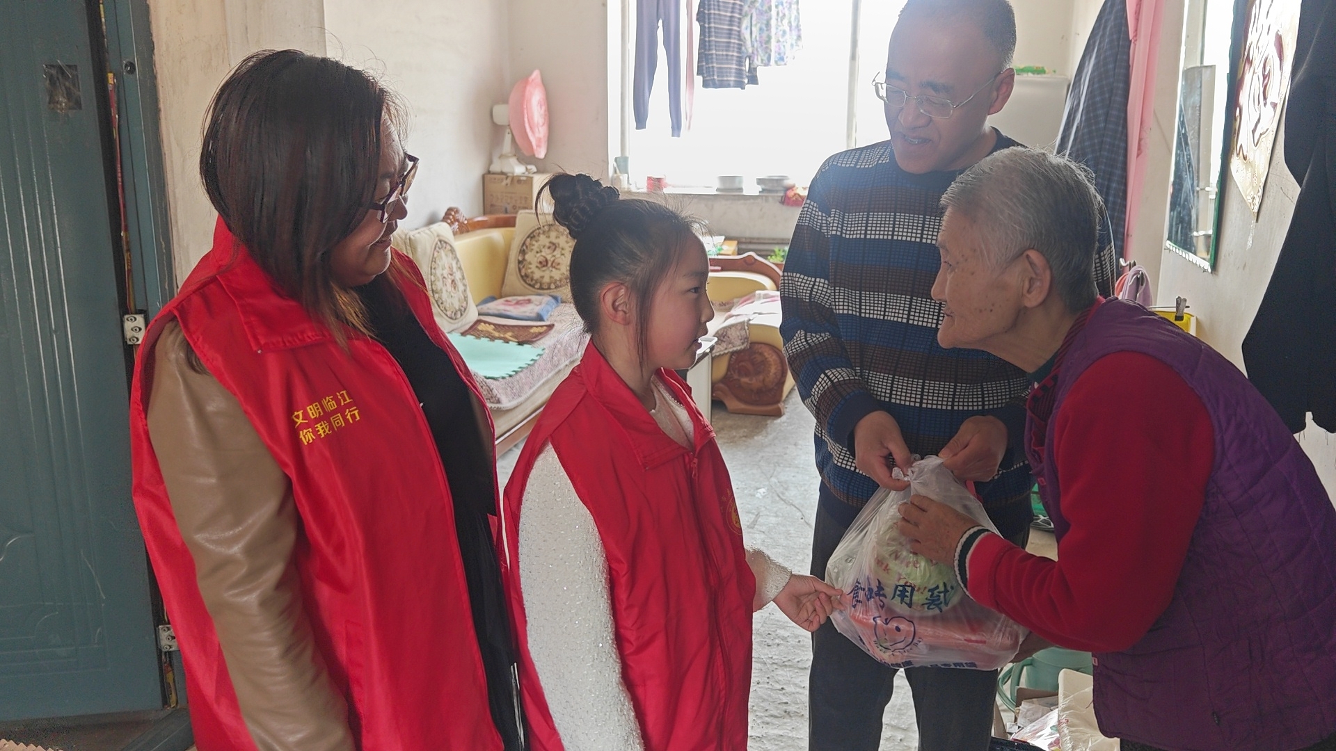 活動中,青年志愿者首先向大家介紹了世界讀書日的來源和意義,并結合自身經歷,講述了自己的讀書體會。隨后,每組家庭憑借攜帶來的蔬菜,通過“以蔬換書”的形式,兌換一本心愛的書籍;為增加親子之間的互動與合作,活動還設置了有趣的套圈游戲,每個家庭領取5個套圈,成功把蔬菜套中的家庭將獲得這些蔬菜做為獎勵;在讀書分享環節,孩子們通過朗讀詩歌、背誦古詩等形式,獲得了一次拆盲盒領取精美禮品的機會,讓孩子和家長們在一片歡聲笑語中既能收獲知識又能感受到快樂。活動結束后,志愿者對剩余的蔬菜進行分類裝袋,家長和孩子們一同為社區里的孤寡老人、貧困家庭送去“愛心”蔬菜,讓社區的弱勢群體感受一份溫暖的同時,也讓孩子們在活動中收獲幫助他人的喜悅。