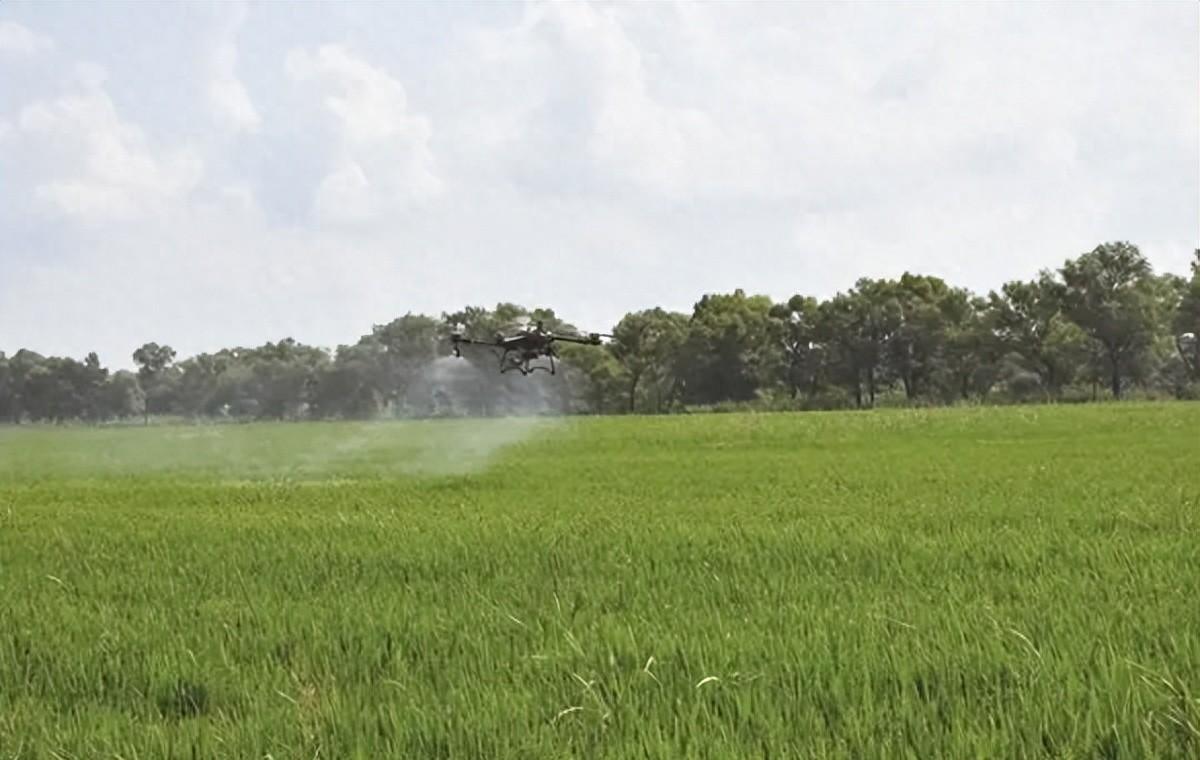 艷陽高照,水稻抽穗揚花。無垠綠野上,無人機正在稻田上方徐徐飛行,它以嫻熟的“技藝”,均勻地為水稻植株噴灑著“營養液”。